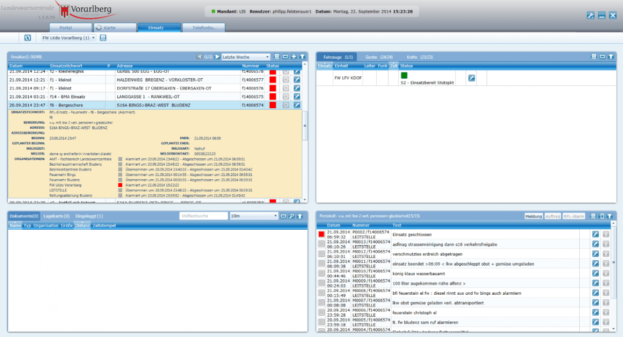 Bei der Einsatzdokumentation kann die Einsatzleitung / Florianstation mit LIS eine professionelle und sichere Form der Dokumentation (eine Übergabe der Daten in syBOS ist vorgesehen) nützen. Alle am Einsatz beteiligten Stellen die LIS nützen, sind immer auf aktuellem Informationsstand.